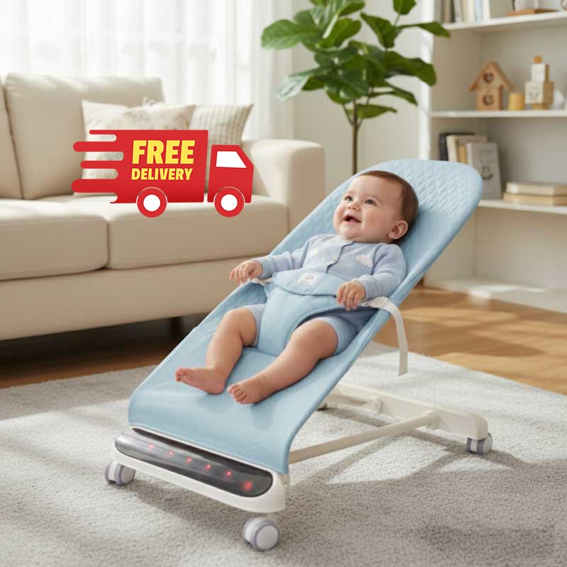 চাকা থাকায় বাচ্চাকে এখন যেকোনো জায়গায় সহজে নিয়ে ঘুরতে পারবেন, আপনার ছোট্ট সোনামণির জন্য নিরাপদ, আরামদায়ক ও বিনোদনমূলক একটি আসন খুঁজছেন? তাহলে এই LED মিউজিক্যাল বাউন্সার হতে পারে পারফেক্ট চয়েস। এর ইন-বিল্ট মিউজিক সিস্টেম, LED লাইট ও বাউন্সিং মুভমেন্ট শিশুকে আনন্দিত রাখবে এবং সহজে ঘুমোতে সাহায্য করবে।